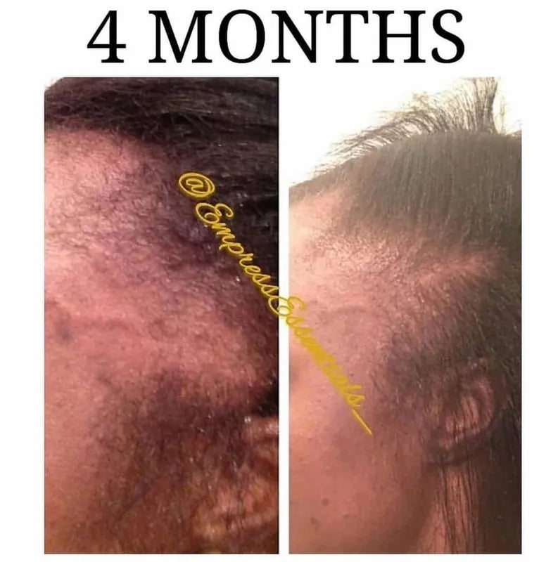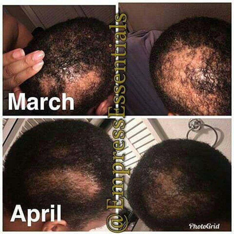100% organic and made with over 16 ingredients essential for hair growth.The high quality natural ingredients used in Empress Essentials not only promotes blood flow to the scalp which produces hair growth, it strengthens the hair to stop breakage and thinning and produces thick healthy hair growth.